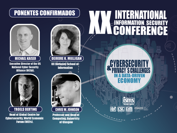 Esta nueva edición lleva el título “Cybersecurity and Privacy´s challenges in a data-driven economy” y contará con la presencia de instituciones internacionales como el Centro Nacional de Ciberseguridad de Reino Unido y Comisión Europea, mientras que en el plano nacional formarán parte el Instituto Nacional de Ciberseguridad, el Departamento de Seguridad Nacional, el Centro Nacional para la Protección de Infraestructuras Criticas y Ciberseguridad y la Agencia Española de Protección de Datos.