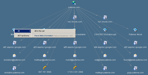 | En una gran compañía la información necesita ser accesible por sus empleados y al tiempo estar disponible para el resto del mundo. Este hecho se muestra como un arma de doble filo pues ambos flujos de información han de ser estrechamente controlados. Es habitual el control del acceso a la información para los empleados, pero, ¿qué pasa con la información que la empresa da de si misma al resto del mundo?, ¿está realmente controlada? El problema: Para la empresa actual poder publicar información es algo vital, pero se encuentra con la dificultad de controlar todo el volumen de información que publica voluntaria o involuntariamente. Las fugas de datos se producen cuando la información confidencial de una empresa sale de la misma o cuando empleados u otras personas tienen acceso a material restringido. Por otra parte, estas fugas pueden conllevar la infracción de la normativa externa porque la información no se puede registrar y recuperar conforme exige la ley. Las herramientas: Aún habiendo detectado la presencia del problema, su concreción y estudio resulta cuanto menos intimidatorio, debido principalmente a la enorme extensión donde buscar las fugas e implantar los filtros necesarios. A la hora de encontrar toda esta información los más rápidos han sido, una vez más, los más interesados. Es por este motivo existen múltiples herramientas y técnicas que permiten a cualquier atacante recopilar de forma fácil y casi automática su preciado botín: la información. Entre esas herramientas hemos elegido una como ejemplo para demostrar la facilidad con la que una aplicación nos permite, entre otras cosas, buscar toda la información existente sobre nuestra empresa y que está accesible de forma pública. Para ello tan sólo es necesario comenzar por un nombre de dominio, una página web, una persona o teléfono. La sencillez de manejo y la gran profusión de resultados impresionan desde su primer uso. Para poner a trabajar esta herramienta basta con descargar, de forma gratuita, la versión más adecuada a nuestras necesidades en función del Sistema Operativo que empleemos y arrancarla una vez descomprimida.